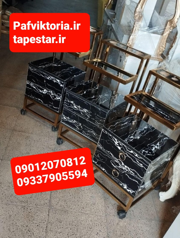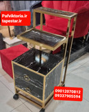 ترولی آرایشگاهی چوبی تسمه ای دو کشو مشکی سفید ارسال به سراسر ایران امکان خرید حضوری