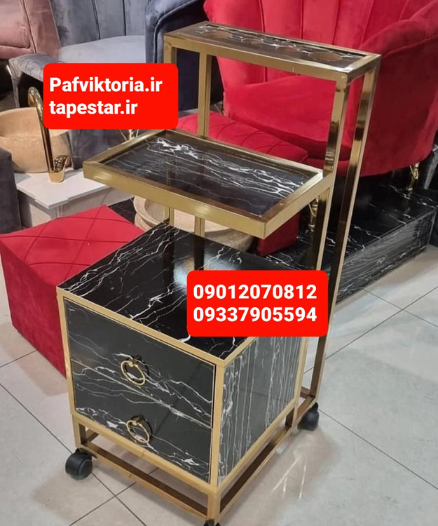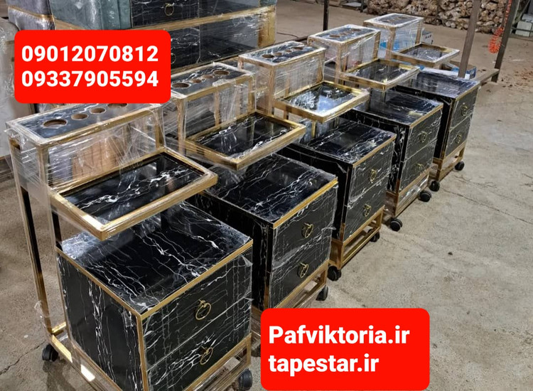 ترولی آرایشگاهی چوبی فلزی دو کشو جاسشواری ارسال به سراسر ایران امکان خرید حضوری