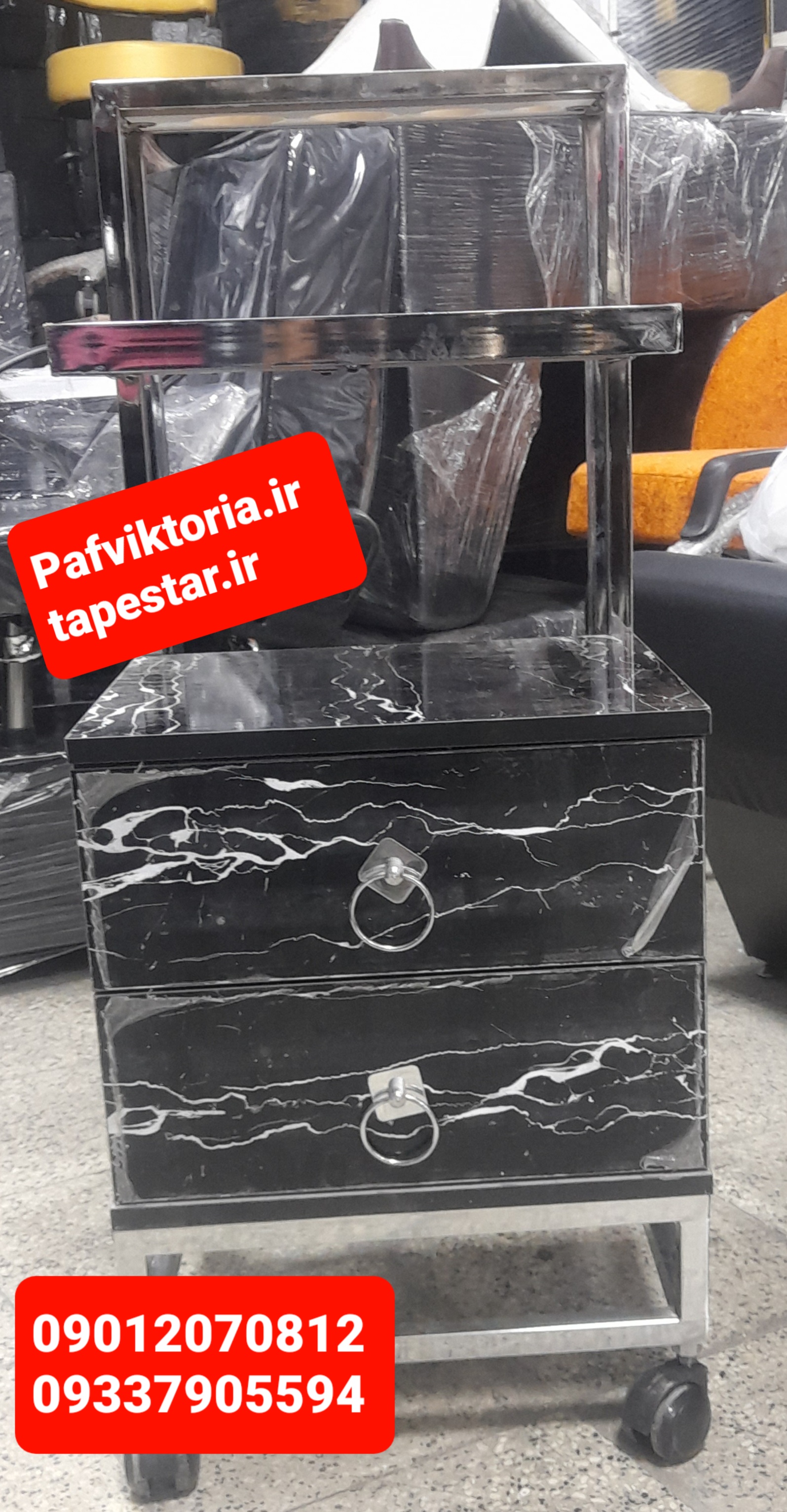 ترولی آرایشگاهی دو کشو جاسشورای مشکی سفید ارسال به سراسر ایران امکان خرید حضوری