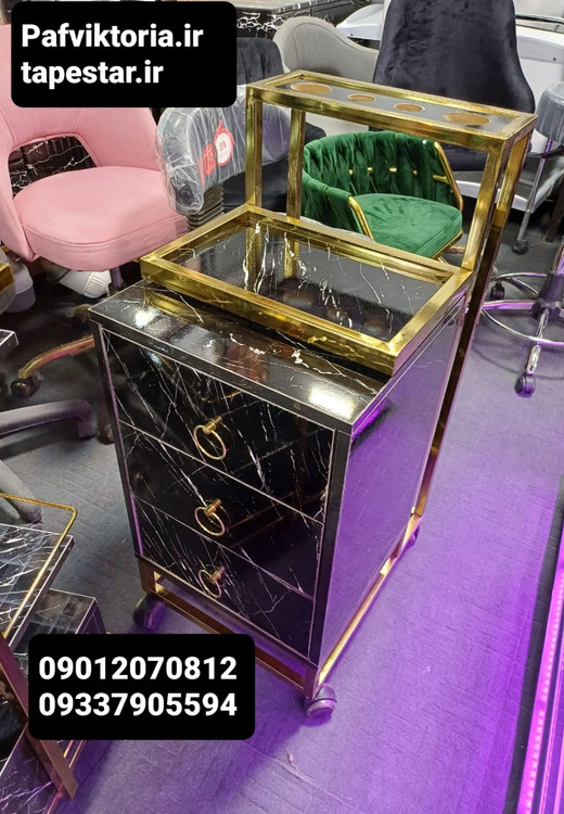 ترولی آرایشگاهی چوبی پله سه کشو مشکی سفید ارسال به سراسر ایران امکان خرید حضوری