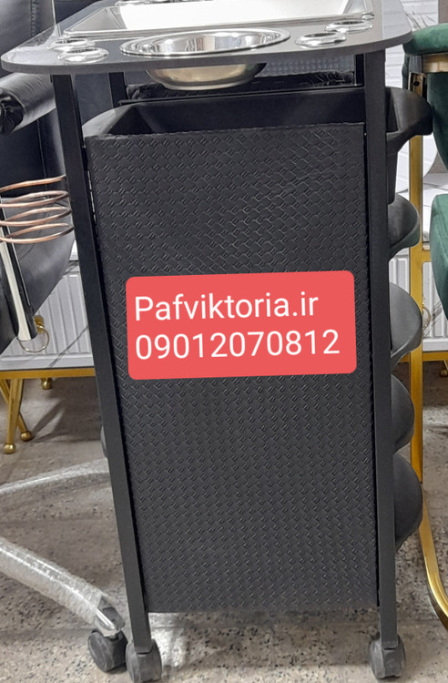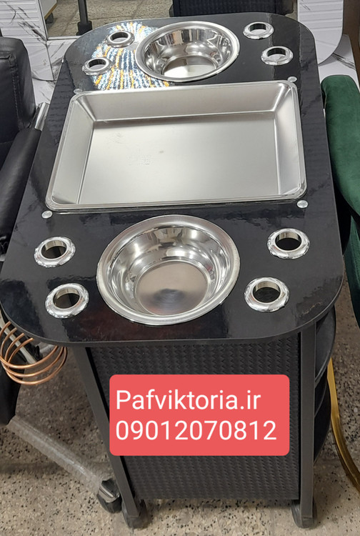 ترولی آرایشگاهی چرخ دار بغل چرم سفید مشکی کاسه ای ارسال به سراسر ایران