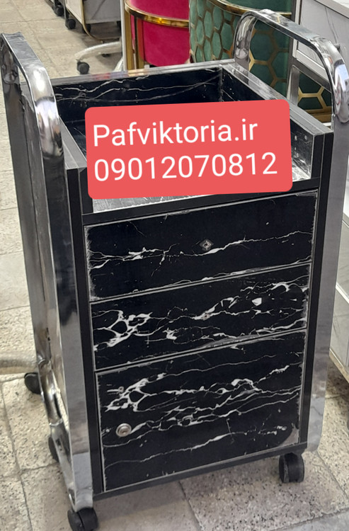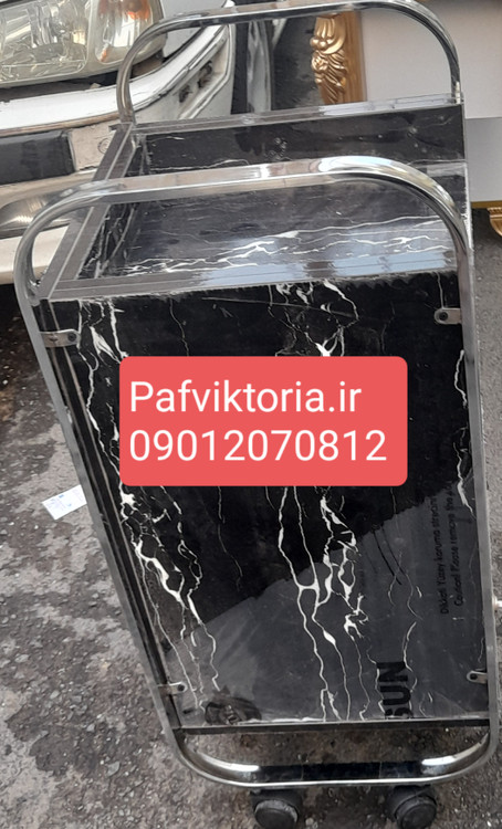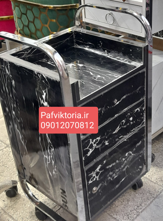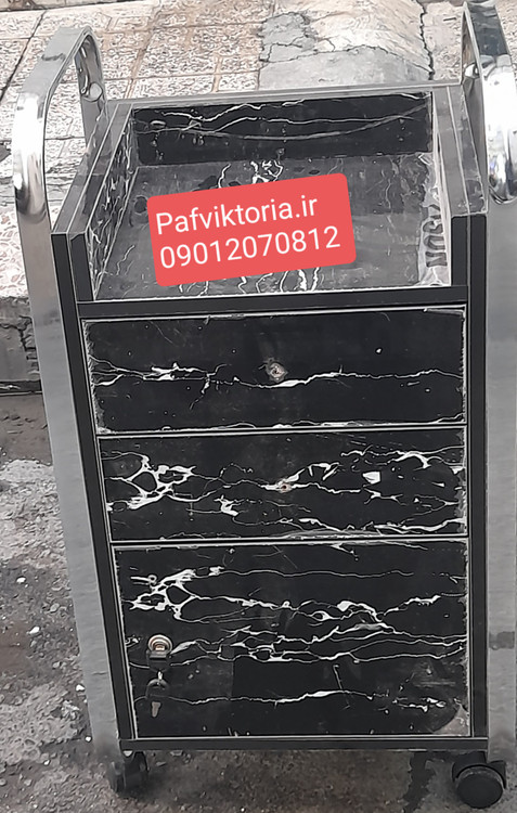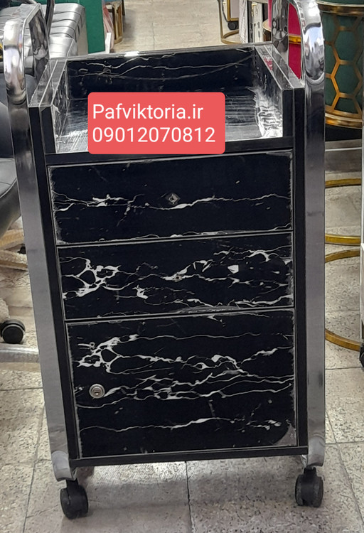 ترولی آرایشگاهی چوبی هایگلاس قفل دار کروم طرح سنگ ارسال به سراسر ایران