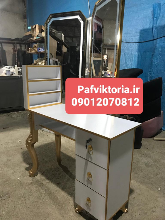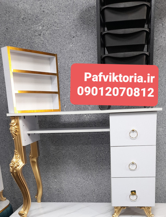 میز ناخن آرایشگاهی تک نفره همراه با استند سه کشو نوار طلایی ارسال به سراسر ایران