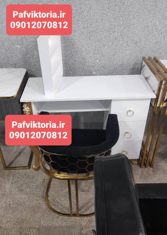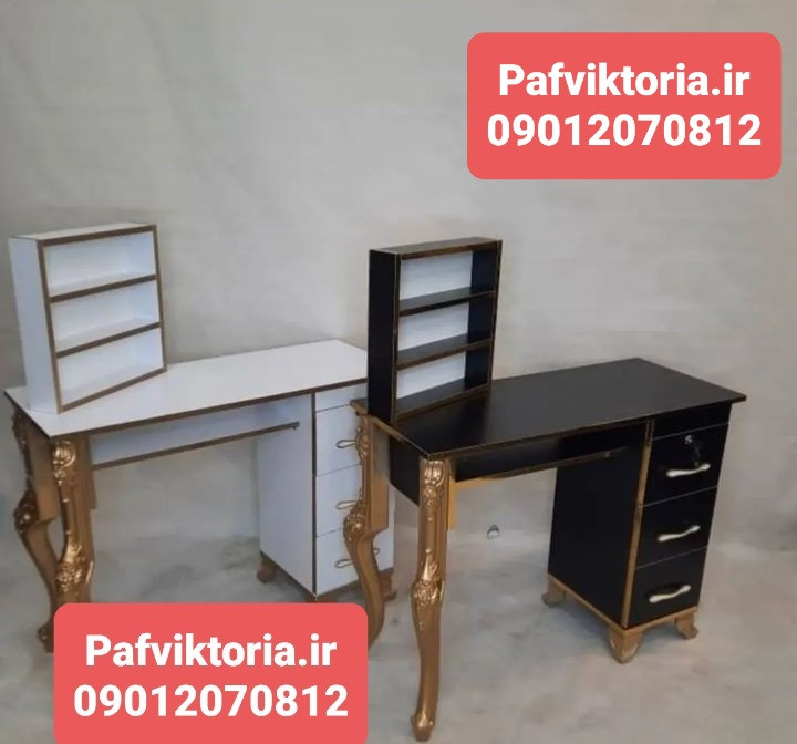 میز ناخن آرایشگاهی تک نفره همراه استند سه کشو سفید مشکی ارسال به سراسر ایران