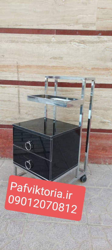 ترولی چوبی آرایشگاهی چرخ دار دوکشو جاسشواری مشکی سفید ارسال به سراسر ایران امکان خرید حضوری