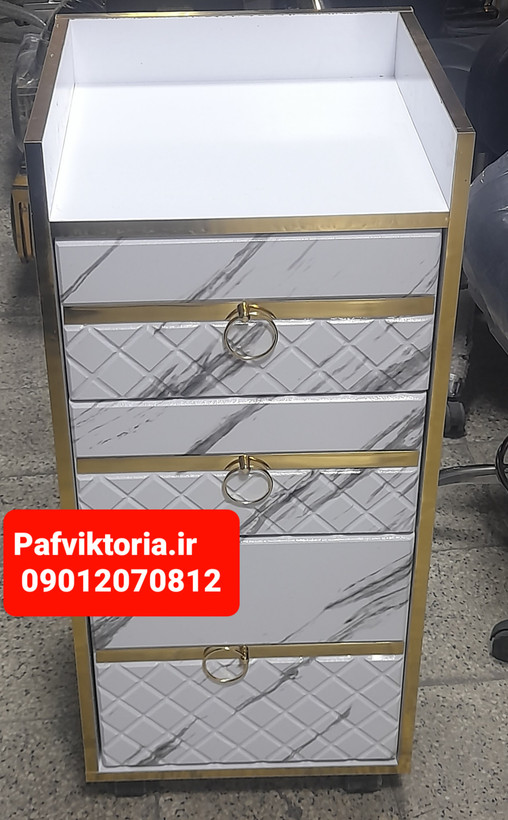 ترولی چوبی آرایشگاهی دوکشو یه کمد نوار طلایی ارسال به سراسر ایران امکان خرید حضوری