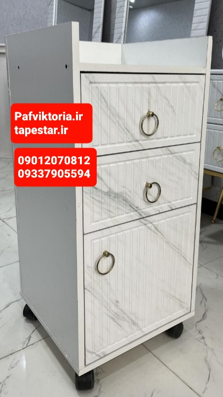تزولی چوبی آرایشگاهی چرخ دار دو کشو یه کمد در کرکره ای ارسال به سراسر ایران امکان خرید حضوری