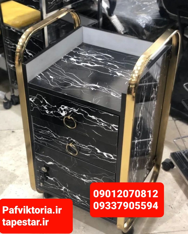 ترولی آرایشگاهی چوبی تسمه ای دو کشو یه کمد ارسال به سراسر ایران امکان خرید حضوری
